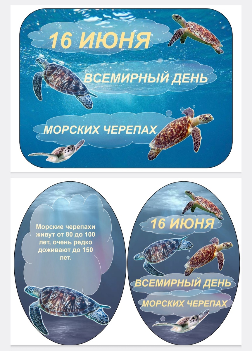 16 июня отмечается всемирный день морских черепах. Это удивительные животные, которые находятся на грани исчезновения. Морские черепахи являются очень древними животными. Учёные находят окаменелости морских черепах, которые относятся к периоду 100 миллионов лет назад. Пол морских черепах определяется температурой песка, в который самка отложила яйца. Удивительным является тот факт, что самки всегда возвращаются откладывать яйца на тот пляж, на котором вылупились сами. Эти и другие факты о морских черепахах - в материале ко дню морских черепах. Материал можно использовать как оформление (постер и 9 облачков-фактов) или скрепить в мини-книгу о морских черепахах. Скачать разработку можно с маркеплейса "Инфоурок": или обратиться на страницу студии вконтакте: Хорошего дня!