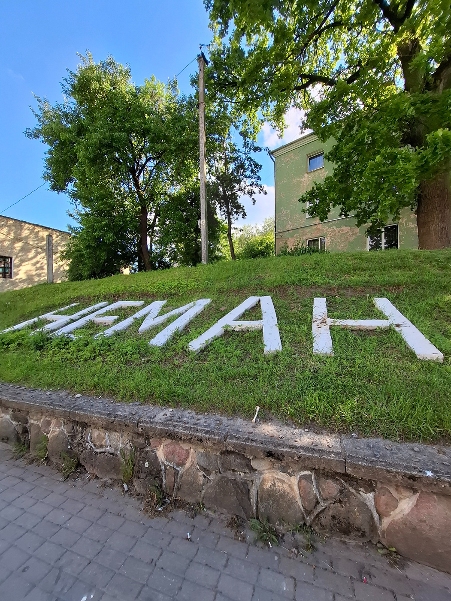 На жилом доме рядом с башней нанесён огромный мурал с основными пейзажами города Немана-Рагнита: