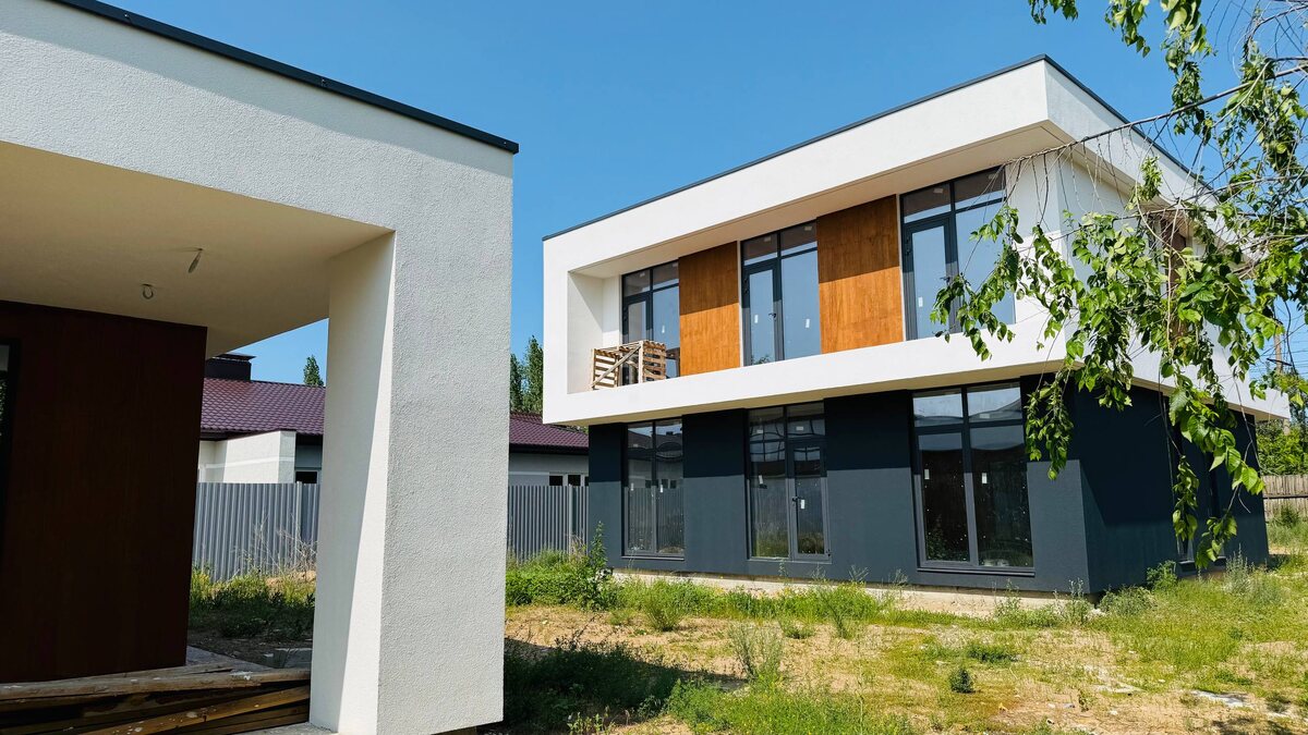 🏡 Дом и баня — полностью готовы! Завершили строительство современного двухэтажного дома с плоской крышей. Белоснежный фасад, лаконичная архитектура и панорамные окна — всё, чтобы наслаждаться простором, светом и гармонией с природой. Рядом — баня в едином стиле с домом: такие же панорамные окна, аккуратная терраса и идеальная сочетаемость по дизайну и материалам. На данный момент мы утверждаем проект внутренней отделки. Продумываем каждый элемент — от планировки розеток до финальных отделочных решений, чтобы дом был не только красивым, но и максимально комфортным для жизни. 📍Визуальный стиль уже полностью сформирован — осталось наполнить его уютом. #готовыйдомоцентр
