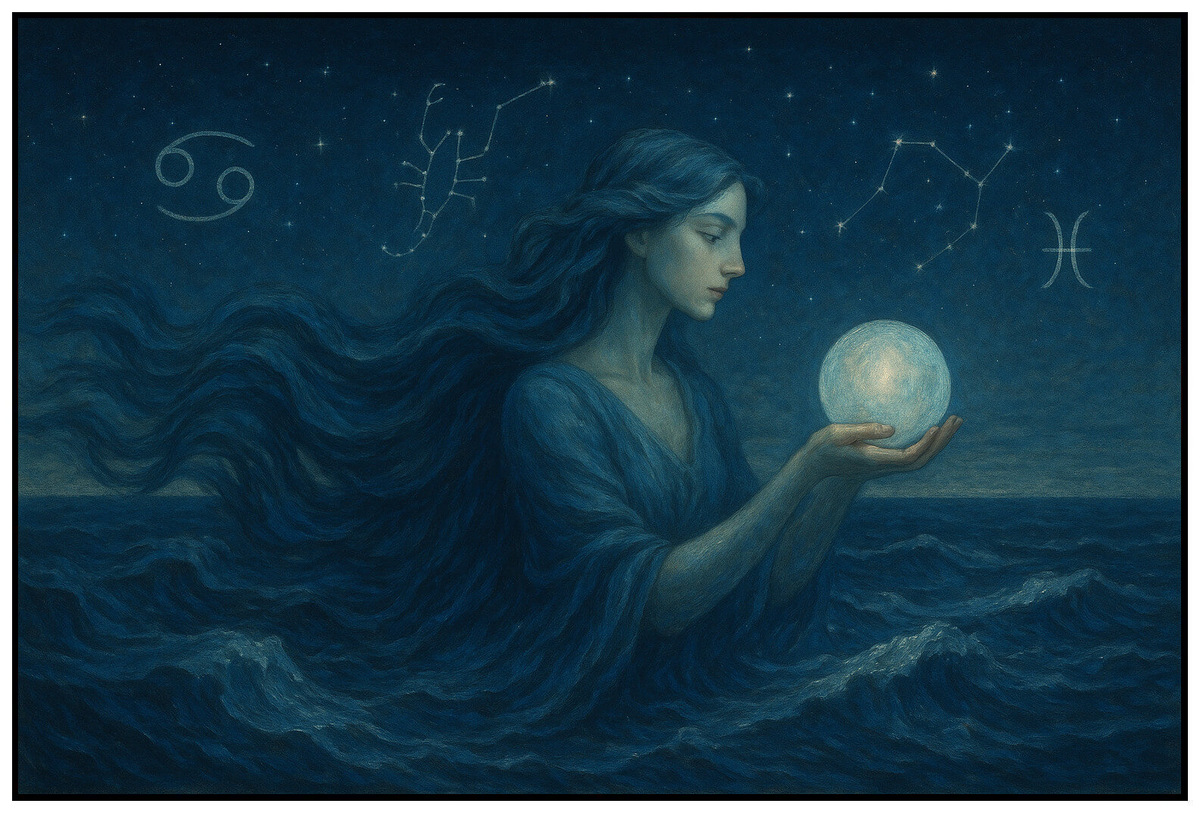 Представьте себе океан. Бескрайний, таинственный, вечный. Мы плывём по его поверхности, как будто бы легко и свободно — но под нами кипит жизнь. Там, внизу, рождаются сны, прячутся воспоминания, которые мы не хотим терять, там танцуют страх и страсть в объятиях вечности. Это не просто вода. Это наша природа. Это зеркало души. В астрологии вода — это не просто стихия. Это пульс эмоций, ритм интуиции, язык бессознательного. Если вы чувствуете чужую боль без слов, если ваши сны кажутся вам реальнее жизни, если музыка проникает прямо в сердце и заставляет его рыдать или смеяться — возможно, вы — человек воды. Если представить водную стихию как реку, то Рак — её родник. Чистый, тёплый, наполненный запахом домашнего уюта, голосами прошлого, светом детства. Он помнит всё. Каждое слово, каждую ласку, каждый взгляд. Его эмоции — это не просто реакция, это связь. С семьёй, с корнями, с тем, что делает человека целостным. Но когда этот источник пересыхает, Рак становится тревожным, замкнутым, жад