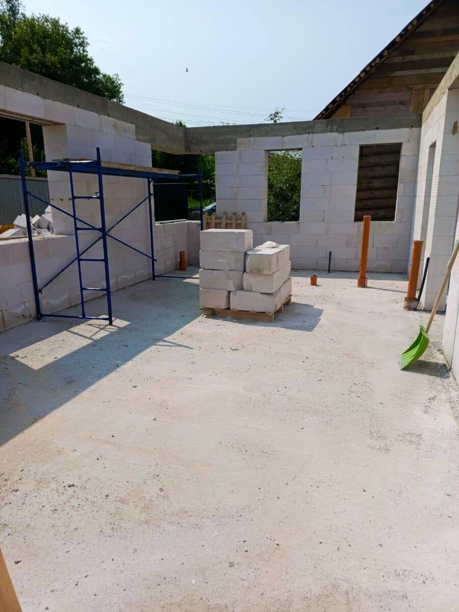 Мы начинали процесс с армирования монолитного пояса, что обеспечивает прочность конструкции на долгие годы вперёд. Затем залили бетон, и вскоре перейдем к монтажу стропильной системы и балок перекрытия.