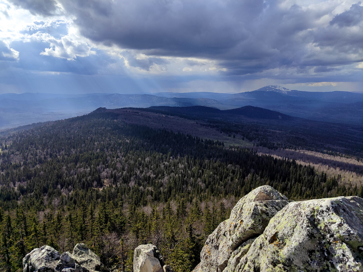 Также с вершины отличный обзор на самую высшую точку Южного Урала - гору Большой Ямантау.