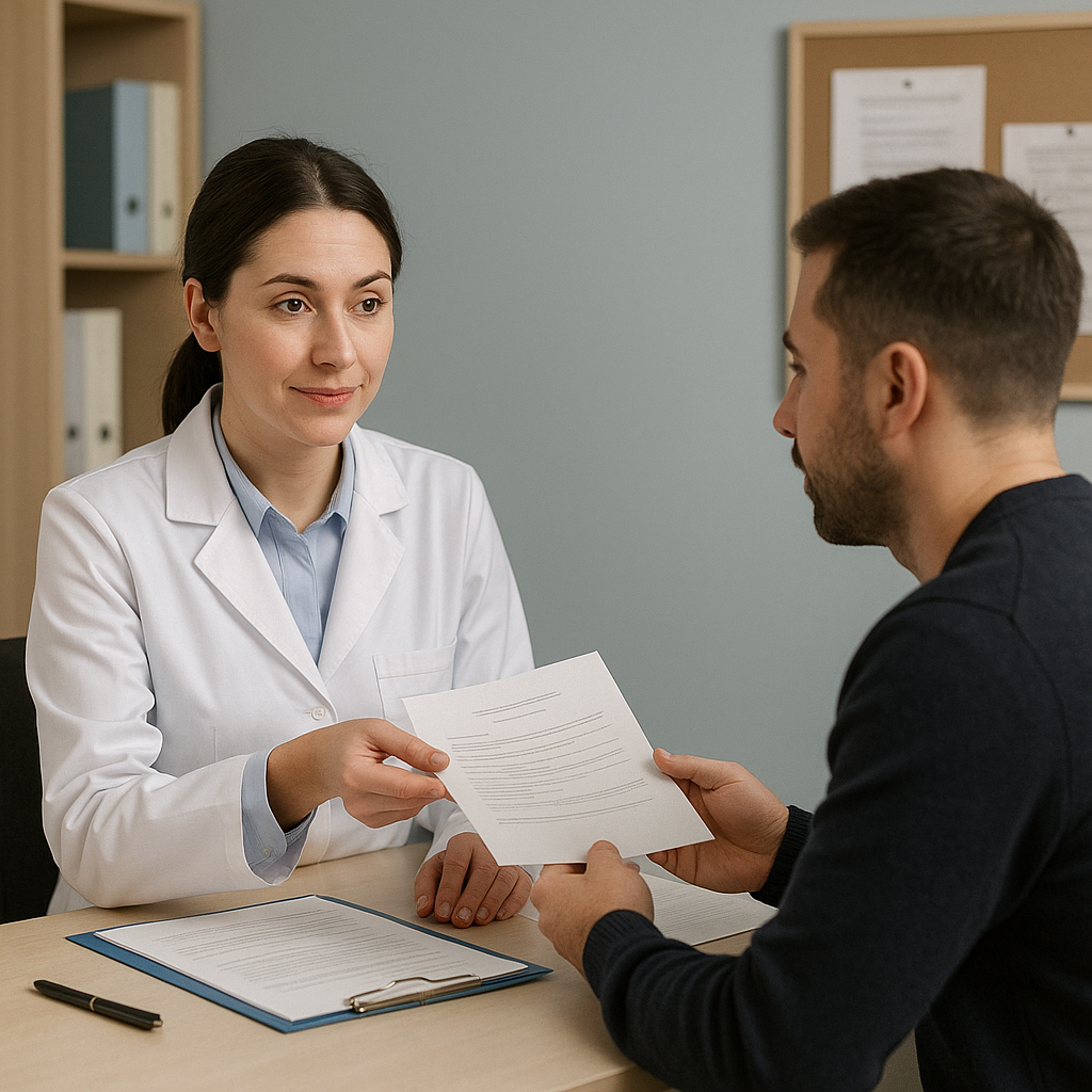 «Бывает, что формы путают. Давайте вместе разберёмся, для какой цели нужна справка — и подберём подходящий вариант». Так человек не чувствует себя виноватым и охотнее идёт на диалог. Если пациент не уверен, полезно показать выдержку из официального документа или памятку.