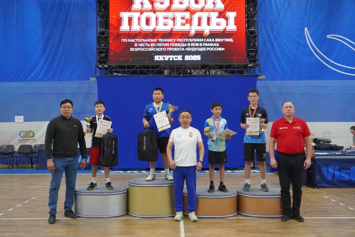 Будущее России. Итоги Кубка Победы по настольному теннису в Якутске Сегодня, 15 июня, во Дворце спорта "50 лет Победы" состоялось торжественное закрытие республиканского турнира "Кубок Победы", посвящённого 80-летию Победы в Великой Отечественной войне. В течение трёх дней 138 юных спортсменов из 15 районов Якутии боролись за звание лучших в трех возрастных категориях. Победители и призёры соревнований: Девочки до 12 лет: 🥇 Уйгурова Уйгулаана Павловна (Верхневилюйск) 🥈 Попова Айталина Дмитриевна (Майя) 🥉 Тараярова Дайаана Аркадьевна (Якутск) и Шадрина Анна Иннокентьевна (Нижний Бестях). Мальчики до 12 лет: 🥇 Никитин Константин Айсенович (Якутск) 🥈 Местников Айсен Владимирович (Якутск) 🥉 Алексеев Олимпий Бориславович (Нюрба) и Давыдов Максим Арианович (Нюрба). Девушки до 14 лет: 🥇 Савченко Вера Романовна (Нерюнгри) 🥈 Кривошапкина Дарина Геннадьевна (Чурапча) 🥉 Ибрагимова Елизавета Денисовна (Нерюнгри) и Кельциева Аянеса Степановна (Якутск). Юноши до 14 лет: 🥇 Илларионов