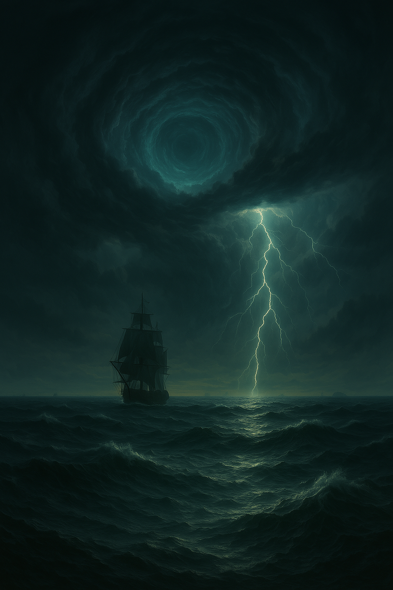 **Глава 1. Исчезновение** В 2027 году научно-исследовательское судно *"Астрея"* вышло из порта Майами. Команда из 12 человек, включая учёных, инженеров и пилотов подводных дронов, направлялась в сердце Бермудского треугольника. Их цель — изучить аномальные магнитные поля и проверить гипотезу о существовании временных искажений. Капитан судна, Элиза Мартин, была бывшим офицером ВМС США. Она не верила в мистику, но уважала океан. Особенно — этот участок Атлантики, где исчезали корабли, самолёты и даже спутниковые сигналы. На третий день экспедиции приборы начали вести себя странно. Компасы вращались, GPS терял координаты, а эхолокатор показывал под судном пустоту — словно океан исчез. **Глава 2. Врата** Ночью над горизонтом вспыхнуло свечение. Оно не было похоже на молнию — скорее, на северное сияние, но в тропиках. В этот момент *"Астрея"* словно провалилась сквозь воду. Все приборы отключились. Связь с берегом прервалась. Когда команда пришла в себя, они увидели, что небо из