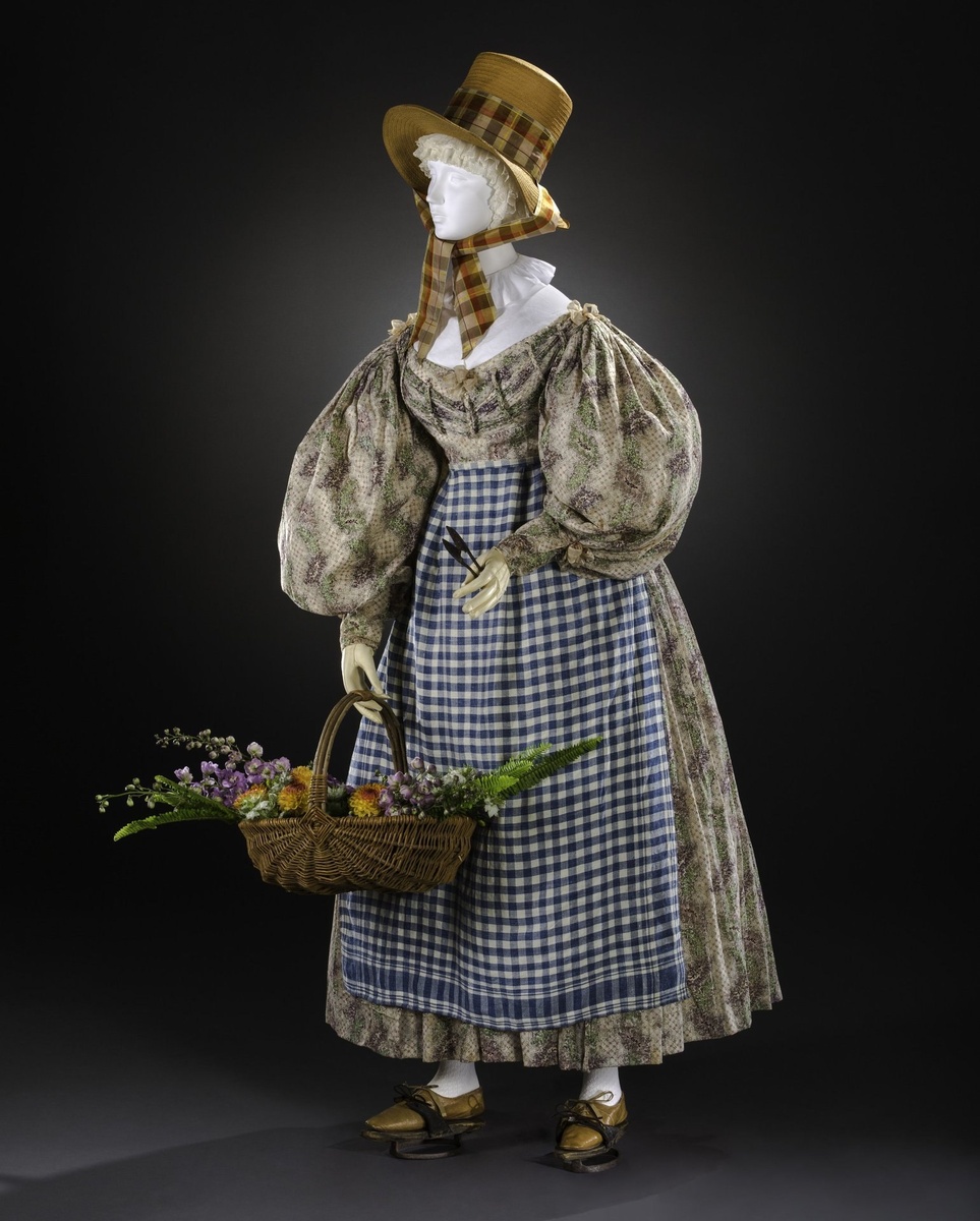 Это костюм для садоводства 1830-х гг. Пушкинские красавицы вполне могли носить такой. Ныне экспонат хранится в коллекции музея FIDM в Лос-Анджелесе, где и было сделано это фото.