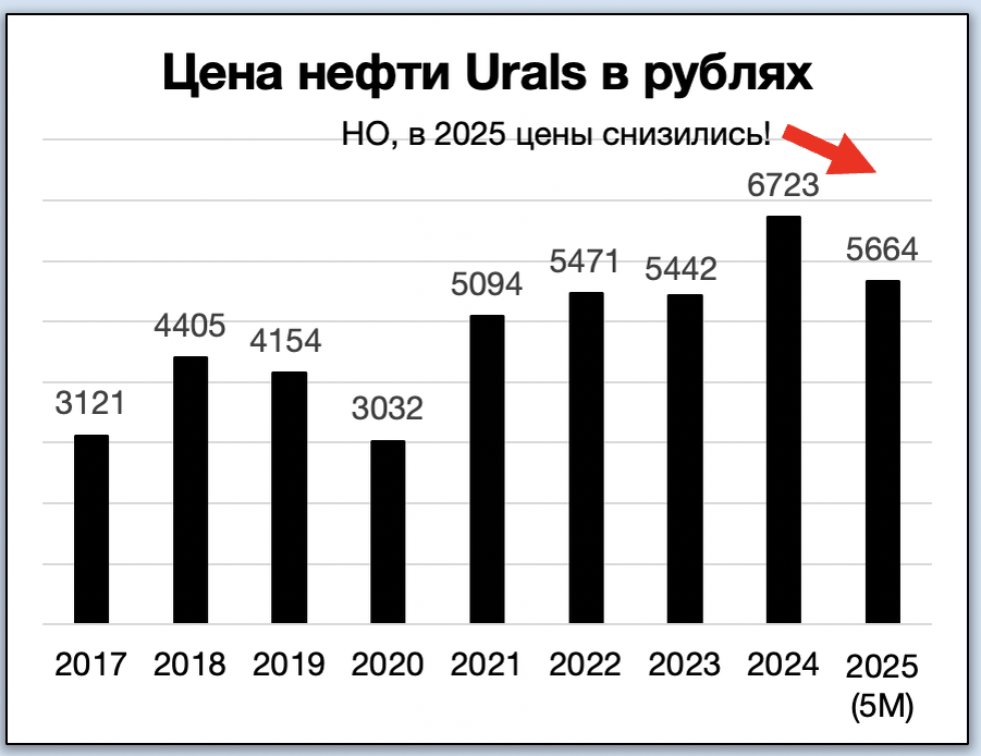 В 2024 средняя цена барреля в рублях выросла с 5 442 руб. до 6 723 руб. (это +23,5%). При этом, операционная прибыль как Роснефти, так и Лукойла г/г даже немного снизилась.