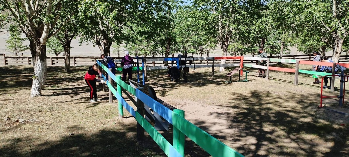 Детская площадка в парке,июнь 2025 год. Источник: "Библиотека Хапчеранга"(https://ok.ru/profile/585943766410)
