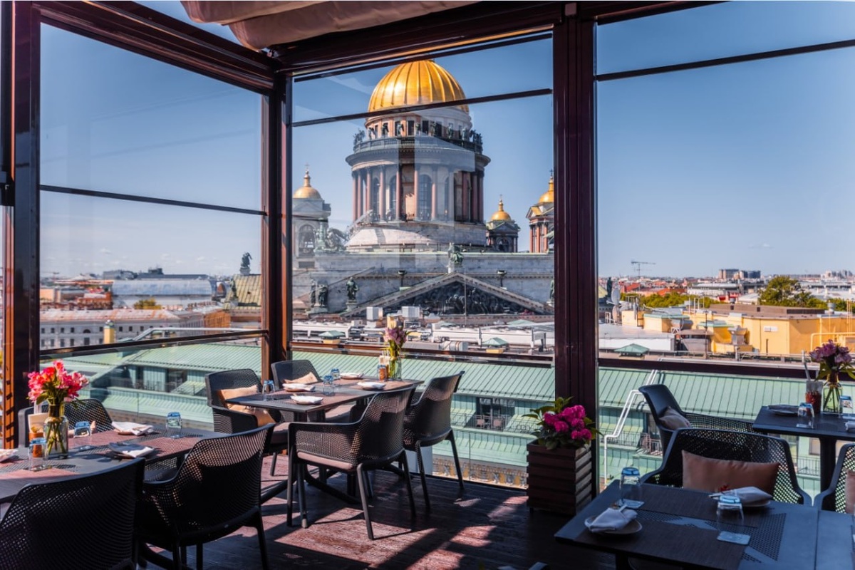 🍸 HI-SO Terrase Модный ресторан-бар на крыше отеля So/St. Petersburg с потрясающим видом на Исаакиевский собор. Креативные коктейли и расслабленная атмосфера для летних тусовок. 🍷 Sky&Wine Bar Винный бар на крыше с видом на Исаакиевский собор. Атмосфера уюта, большой выбор вин и лёгкие закуски — идеальный вариант для неспешных вечеров и красивых закатов. 🏙 F11 Панорамный ресторан на 18 этаже отеля Азимут. Шикарный вид на центр Петербурга, авторская кухня и джазовые вечера — для тех, кто ценит стиль и качество. 🌇 Bellevue Панорамный ресторан с террасой на крыше отеля Kempinski. Круговой вид на Неву и исторический центр, изысканное меню и элегантный интерьер — для особых случаев. ⛵️ Veter Ресторан с открытой террасой на носу легендарного корабля «Летучий Голландец». Панорама на Неву и Васильевский остров, морская атмосфера и отличная кухня — для ярких летних вечеров.