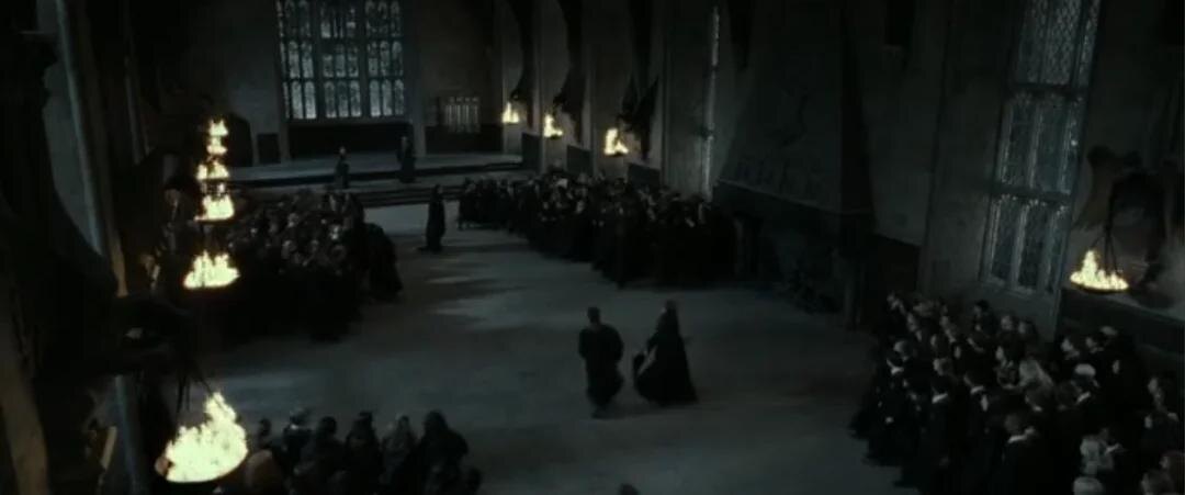 В фильме Гарри Поттер и Дары Смерти: Часть 2 (2012), во время поединка между Макгонагалл и Снеггом, факелы на стенах тускнеют после того, как она использует заклинания с огнём. Это отсылка к детали из книги, где Макгонагалл не просто призывает пламя, а перенаправляет его с факелов на кончик своей волшебной палочки. В этой знаковой сцене зрители быстро заметили, как Снегг, убегая, перенаправляет заклинания в Пожирателей смерти за собой и подбирает их палочки. Об этом уже много раз писали. Но почти никто не упоминает, что в самом начале сцены факелы гаснут. По-моему, это сделано намеренно — не только для создания нужной атмосферы, но и как визуальное объяснение заклинания Макгонагалл. Вместо того чтобы просто создавать огонь, она использует уже существующий — с факелов. А позже возвращает пламя обратно, чтобы вновь осветить помещение. Так что, несмотря на то что фильмы опускают множество деталей из книг, это, скорее всего, попытка режиссёров сохранить точность и уважение к оригиналу, п