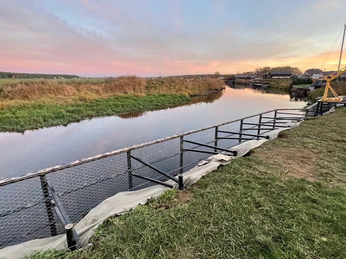 Береговая линия на участках, расположенных у воды, со временем размывается — особенно в Ленинградской области, где большое количество озёр, рек и торфяников. Эрозия, подмыв грунта, обвалы — это не только потеря земли, но и угроза постройкам, расположенным рядом. Один из надёжных и долговечных способов защиты берега — укрепление с помощью винтовых свай и габионов. Сегодня расскажем о реальном кейсе компании «Свайное Дело», реализованном весной в Ленинградской области. К нам обратился владелец участка на берегу озера в Приозерском районе. Берег активно подмывался — за последние три года линия суши «ушла» почти на 1,5 метра. Участок имел уклон в сторону воды, и ближе к краю стояла баня на свайном фундаменте. Клиент хотел: Мы предложили комбинированную технологию: Такое решение сочетает: По берегу разметили линию установки свай. Завинтили 15 свай Ø89 мм длиной 2,5 м, заглубляя в плотные слои ниже уровня возможного подмыва. Каждая свая была установлена с учётом высоты габиона и общего рель