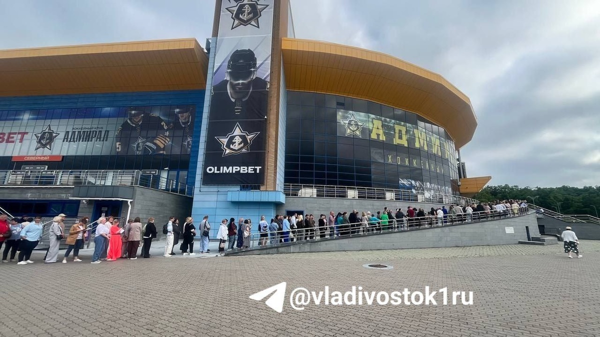 Люди из разных городов Приморского края собираются около ФКК "Фетисов Арена", где уже меньше чем через полчаса начнется концерт Shaman "Победа!". 🟥Подписаться | Предложить новость