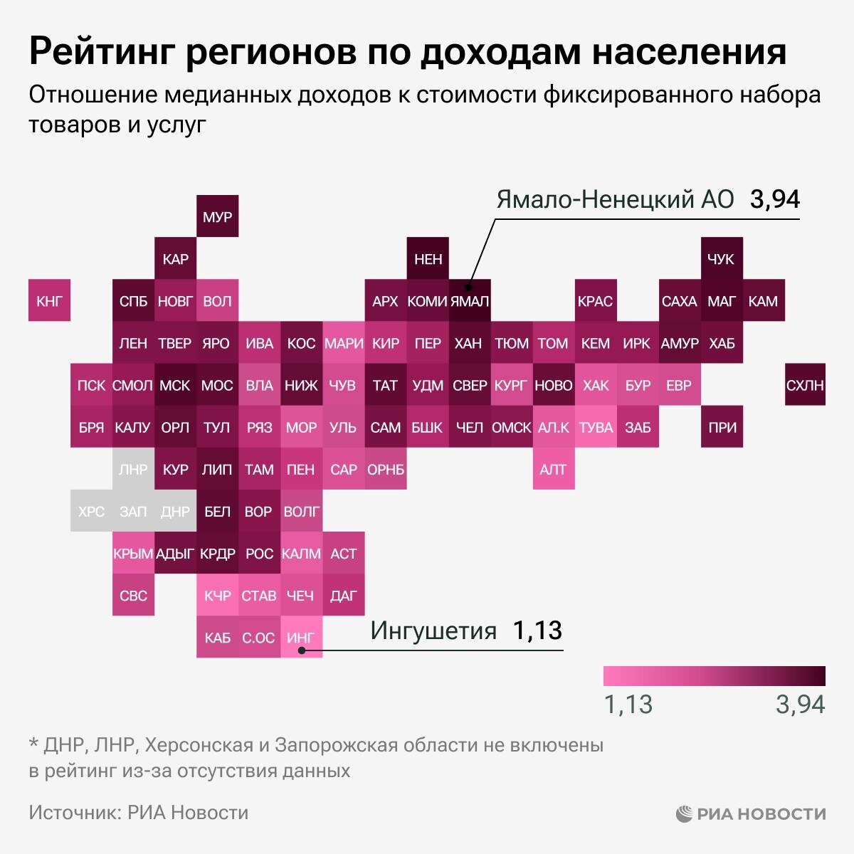 Более 10% населения Северной Осетии живет за чертой бедности Северная Осетия на 71 месте из 85 в рейтинге регионов России по доходам населения в 2024 году. По уровню доходов в СКФО регион занял третье место, оказавшись ниже Дагестана и Кабардино-Балкарии.