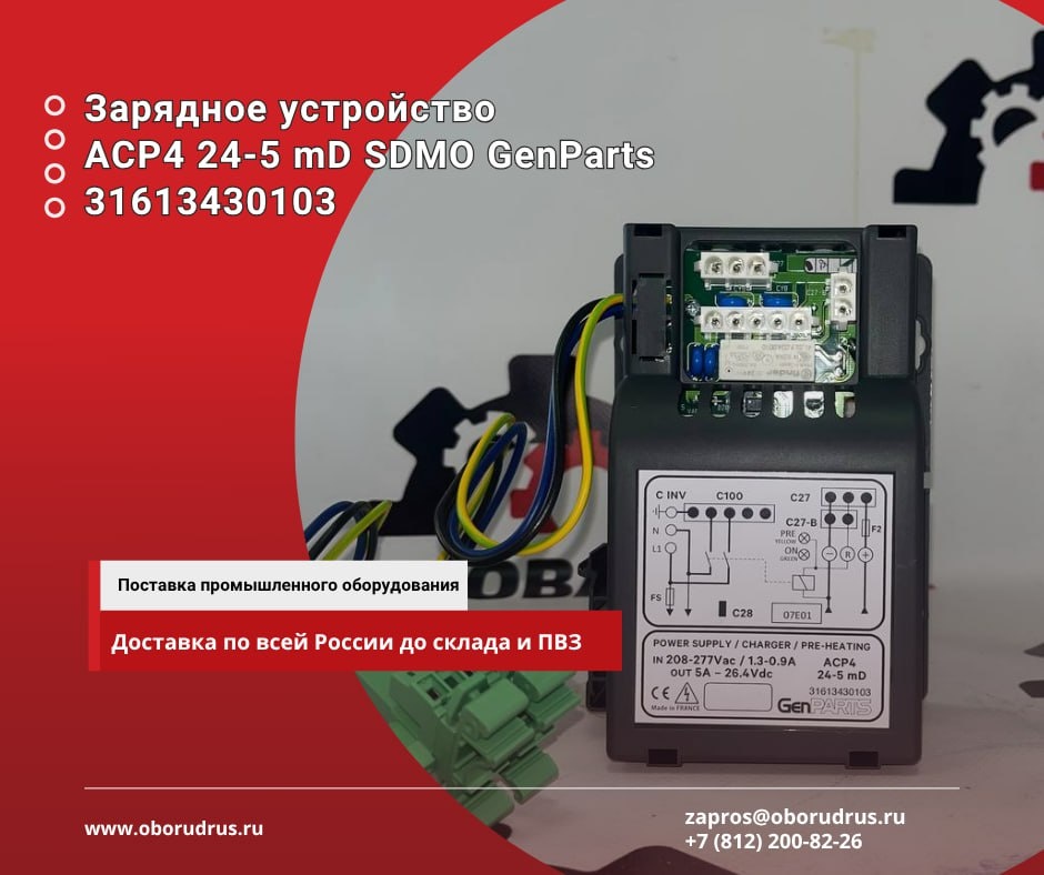 🔌 Поставим зарядное устройство от GenParts до вашего склада ACP4 24-5 mD 31613430103 SDMO — оригинальное зарядное устройство GenParts. Технические характеристики: ▪️ Вход: 208–277 В AC, 1.3–0.9 А ▪️ Выход: 24 В DC, 5 А ▪️ Совмещает зарядку АКБ и функцию подогрева ▪️ Совместимо с контроллерами C100, C27, C28 ▪️ Промышленное исполнение, внутренняя защита ▪️ Производство — Франция 🧩 Устанавливается в дизель-генераторах SDMO, Kohler, подходит для систем автоматического запуска. ✅ Множество категорий товаров для производства и снабжения в одном месте 📍 Доставка по всей Росии 📲 Для расчёта стоимости и сроков: +7 (812) 200-82-26 zapros@oborudrus.ru