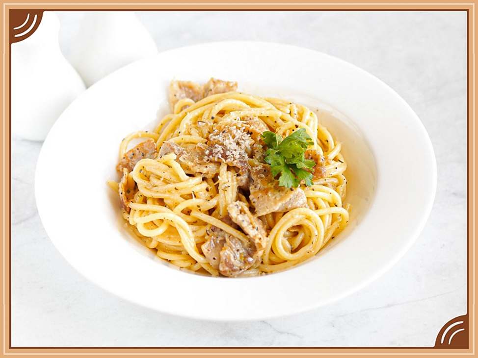Соус для пасты готовится на основе твердого сыра и яичного желтка, благодаря чему заправка в пасте совсем нежирная. Паста, приготовленная по этому рецепту, получается сочной, вкусной и аппетитной.