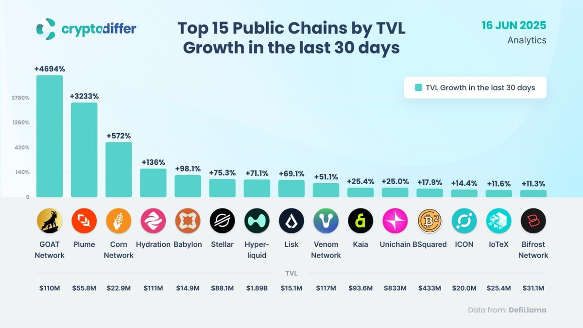 🔸15 крупнейших публичных сетей по росту TVL за последние 30 дней