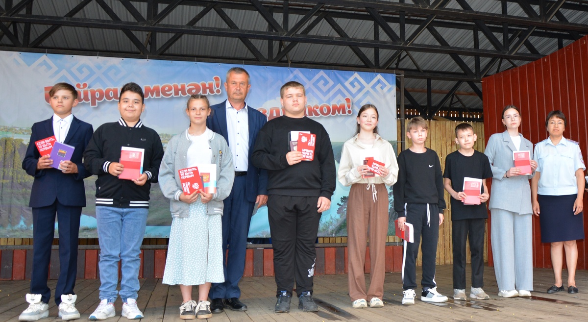 Кульминационным моментом торжественного мероприятия, посвященного Дню России, состоявшегося 12 июня на центральной площади Зилаира, по доброй традиции стало вручение паспортов граждан Российской Федерации нашим юным односельчанам, достигшим соответствующего возраста. Эту почетную миссию выполнил глава администрации сельского поселения Зилаирский сельсовет Александр Годуленко. Он пожелал ребятам успехов и выразил надежду, что они станут достойными гражданами России и в будущем прославят добрыми делами свою малую родину. В концерте, подготовленном самодеятельными коллективами и сольными исполнителями районного Дома культуры, прозвучали песни патриотической направленности, прославляющие нашу Родину, а юные танцоры порадовали участников торжества своими зажигательными танцами. Фото автора.