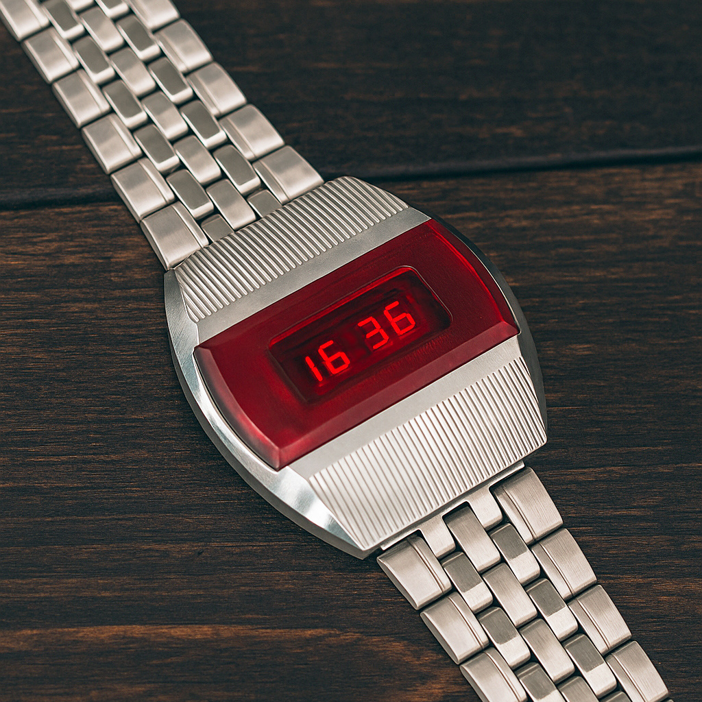 В 1972 году в США вышли первые электронные часы Pulsar. Они выглядели как гаджет из будущего — никаких стрелок, только цифры, появляющиеся при нажатии кнопки. В СССР о таких часах знали — и не собирались отставать. Ответ оказался не хуже, а местами даже интереснее. Работу над первыми электронными часами поручили московскому научно-исследовательскому институту с говорящим названием — «Пульсар». Именно там родилась первая отечественная модель, которая получила простое и гордое имя — «Электроника 1». Часы выглядели строго и даже немного футуристично. Корпус — металлический, дисплей закрыт красным стеклом-фильтром, через который светились цифры. Но просто так они не показывались — нужно было нажать кнопку. Это позволяло экономить заряд.