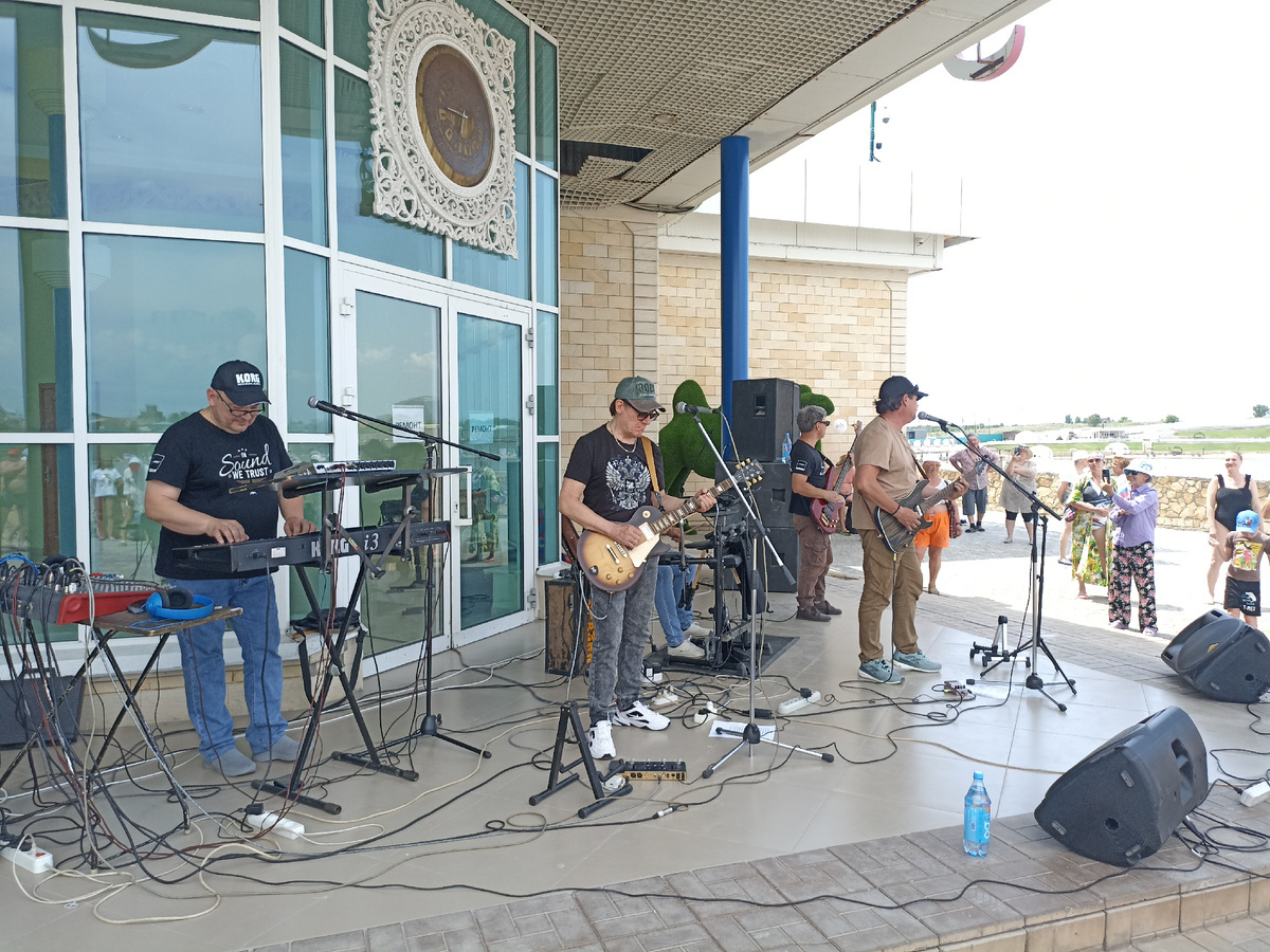 Длинные выходные на празднование Дня России выдались жаркими. Желающие «курортно» отдохнуть дружно потянулись на «Солёные озёра» в Соль-Илецк. Кстати, «потянулись» мы пишем в прямом значении слова. Дело в том, что туристов из Башкирии, Татарстана, Удмуртии, Самарской, Саратовской, Челябинской области, оренбуржцев, конечно же, и многих других было столько, что пробка перед Соль-Илецком, по словам очевидцев, растянулась почти на 8 км. 12 июня в полдень собравшихся у кафе Азия гостей курорта с Днём России и началом сезона-2025 поздравили Виктор Доценко, директор ООО «Солёные озёра» и Алексей Абдрахманов, главный врач Областного центра медицинской реабилитации. После торжественной части для всех отдыхающих выступила рок-группа «Евразия» в следующем составе: Алексей Понятов клавиши, Игорь Якимов соло-гитара, Алексей Криволапов бас-гитара, Николай Зверев барабаны и Денис Никифоров руководитель группы, солист и ритм-гитара. Завершив концерт под открытым небом, музыканты не стали прощаться с