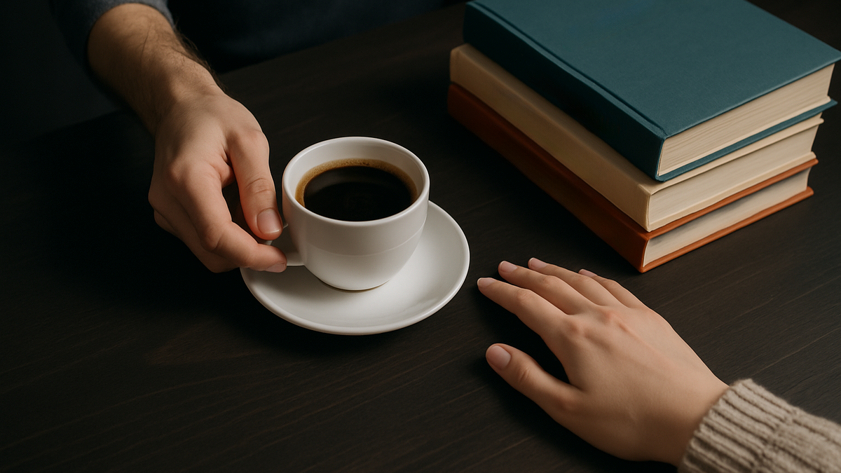 Максим приготовил кофе, стараясь не показать волнения. Руки дрожали, когда он взбивал молоко. На пенке нарисовал сердечко.