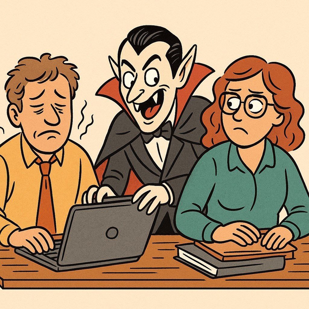 Кажется, просто хотел спокойно поработать. А в итоге после пары разговоров чувствуешь себя выжатым, раздражённым и почему-то виноватым. Добро пожаловать в мир офисных вампиров. Они не пьют кровь. Он пьют твою энергию, твои силы, твой ресурс. Не из злого умысла. Просто хочет сделать хорошо себе, правда за твой счёт. Знакомо? Значит, читаешь не зря. Вечно грустит. Всё плохо, никто не понимает, задачи бессмысленны, а жизнь — борьба. Он не просит о помощи — он вешает на тебя груз своей усталости. Любимые фразы: