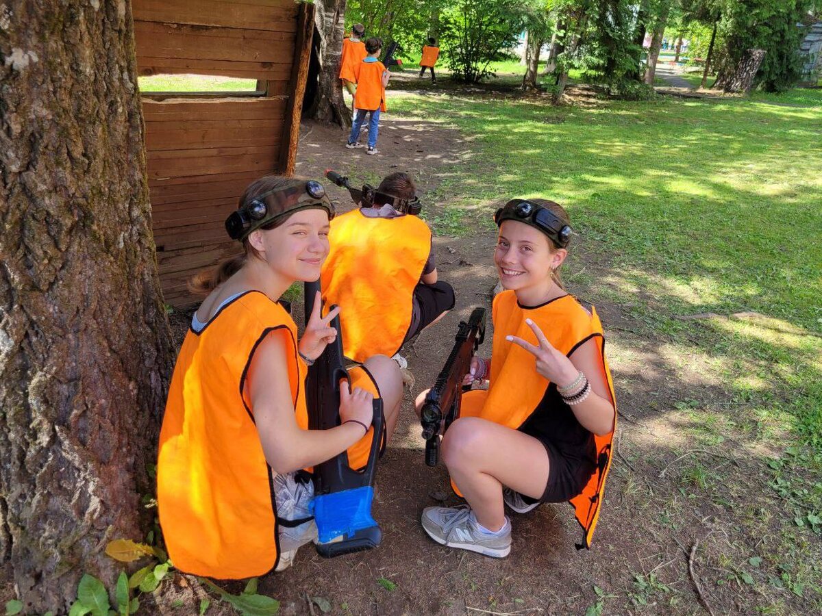 Всем привет, на связи 5️⃣😃🦋⭐🫧 Первая половина дня прошла активно! Мы играли в настолки, делали стикеры, киригами, принимали участие в веселых стартах и так же побывали на лазертаге!💘