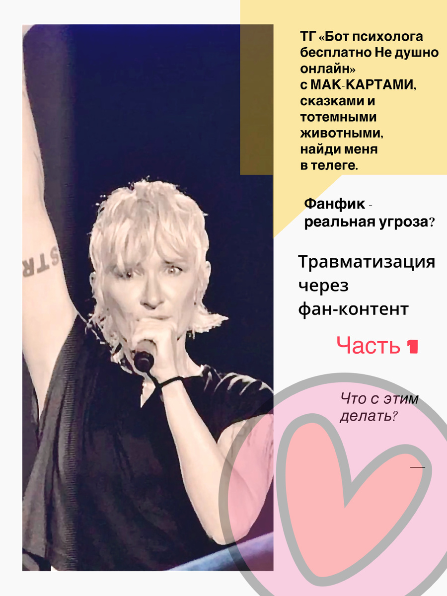 «Погнали дальше, чего😜» #дианаарбенина Травматизация через фан-контент. #клипы@ne_dushno_online Многие даже не задумываются о том, что фанатов может действительно ранить содержание негативных комментов в адрес их кумиров, и это говорит о том, что затрагиваются глубоко болезненные темы. 1. Это может восприниматься как насилие над образом, который является символом силы, защиты и опоры. 2. Это и ощущение нарушения личного, интимного пространства фантазии. 3. Это и желание защитить идеализированный образ. И это все не просто про эмоции и чувства, даже тело может проявлять признаки тревожного расстройства (удушье, «ком в груди», ВСД). Это говорит о том, что психика воспринимает ситуацию как реально угрожающую — даже если рационально понятно, что это всего лишь фанфик. 🔹 Как можно бережно себе помочь? 1. Признать свои чувства и не винить себя. Вы не обязаны принимать всё, что делают другие с любимым вами образом. 2. Вам не нужно чувствовать себя виноватым/ой за то, что вас это задел