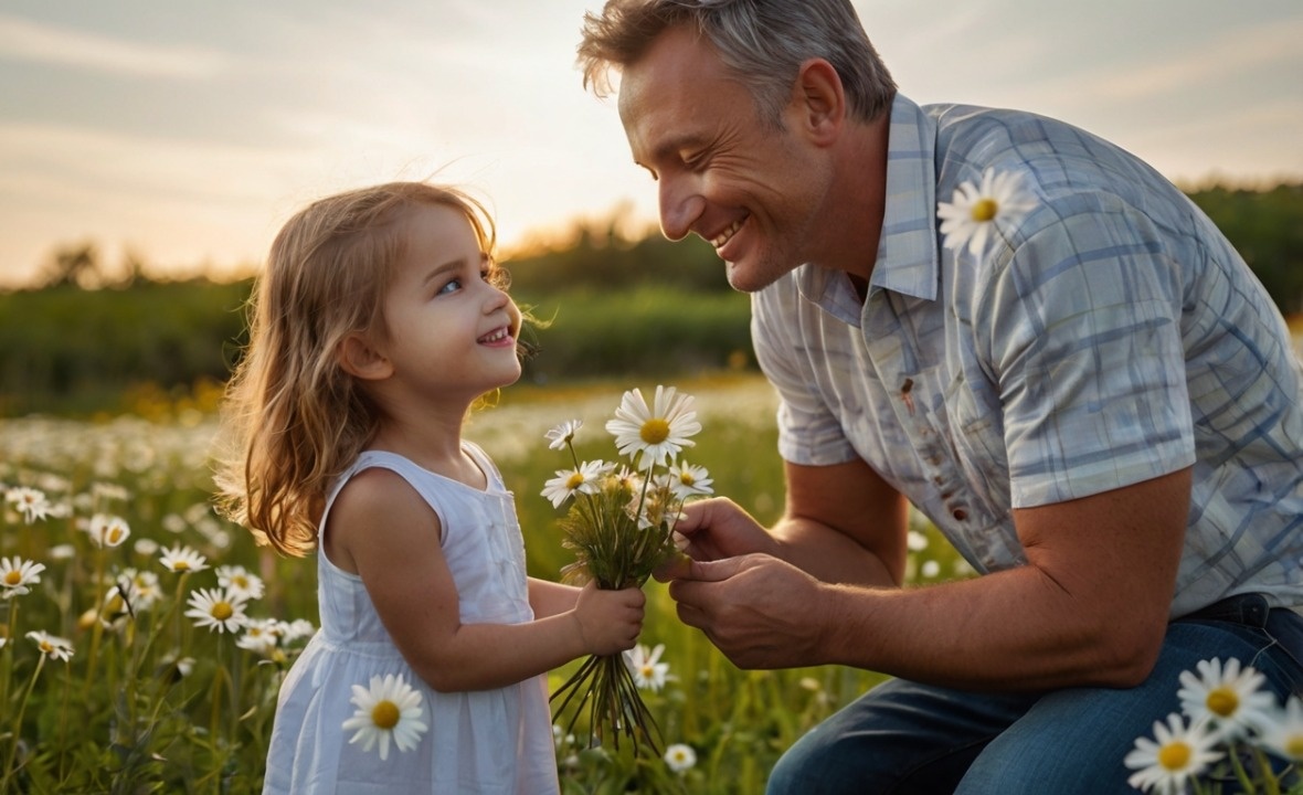 В процессе вчерашней вечерней прогулки Моё внимание остановилось на мужчине, который присев, собирал букетик ромашек. На самом деле, такое я увидела впервые))). Рядом с ним бегала 3 годовалая девочка. И с каким же умилением этот мужчина дарил букетик ромашек этой девочке. Это было так красиво и так трогательно. Я с таким умилением смотрела, аж душа моя улыбалась и радовалась). Купить и подарить цветы может абсолютно любой человек! А вот проявить фантазию и собрать самостоятельно букет полевых цветов - это в наше