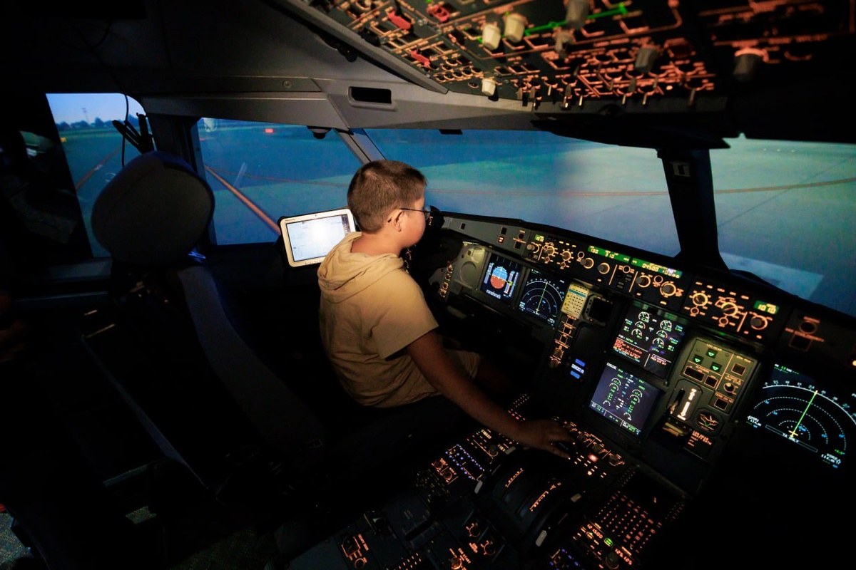 Рома принял участие в экскурсии по тренажёрному комплексу. Он не только узнал много нового, но и смог лично испытать один из пилотажных тренажёров. Рома сидел за штурвалом аэробуса А330, полетал над Сочи и Москвой!
