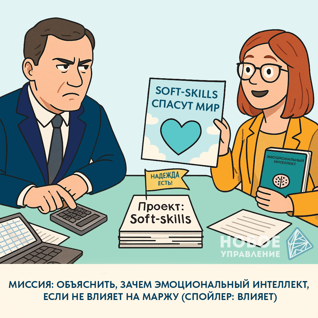 Если перед вами во весь рост встала задача обучить сотрудников мягким навыкам (т.н. soft-skills, или софтам) – поздравляем: вы практически сверх-человек. Так уж повелось в отечественной бизнес-практике, что «протащить» любое обучение – непросто, а развитие софтов – откровенно сложно. Всё потому, что связь между уровнем развития софтов и непосредственным результатом работы сотрудника/руководителя не воспринимается очевидной. Одно дело, когда, например, обучили продавцов техникам продаж – и вот +30% к предыдущим результатам. Или освоил технолог новое оборудование, переписал под него процесс производства – и вот +15% к производительности… А с софтами всё куда как более витиевато: посчитать, какой экономический эффект принесёт, скажем, развитие эмоционального интеллекта или критического мышления не так легко: личностно-душевное оцифровывается с трудом. Но, как говорится, нет ничего невозможного – просто на что-то надо чуть больше времени. Так и с soft-skills. Очень многое зависит от подгот