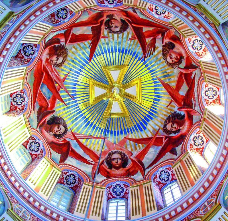 Далее последовала роспись окон в центральном куполе храма.