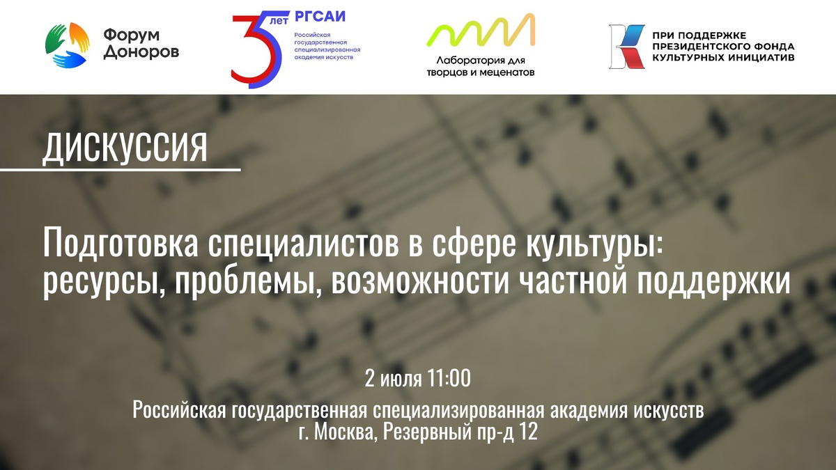 МЕРОПРИЯТИЕ ПЕРЕНЕСЕНО НА ОСЕНЬ 2025 ГОДА Дискуссия «Подготовка специалистов в сфере культуры: ресурсы, проблемы, возможности частной поддержки» Дефицит кадров в сфере культуры, по официальным данным, достигает 20 тысяч человек. Не хватает и директоров учреждений, и менеджеров, и креативных продюсеров, и профессиональных деятелей искусства. 👉 А насколько доступно образование по этим специальностям в российских регионах? 👉 Актуально ли для индустрии то, чему учат в профильных учебных заведениях? 👉 Хотят ли выпускники школ идти в эту сферу? 👉 И кто может изменить ситуацию с кадровым голодом? Обсуждаем с учреждениями культуры, наставниками и донорами в стенах Российской государственной специализированной академии искусств – высшего учебного заведения, где на протяжении более чем 30 лет эффективно реализуются методики инклюзивного образования в сфере культуры и искусства. Форум Доноров. Объединяем лидеров социальных инвестиций и корпоративной благотворительности
