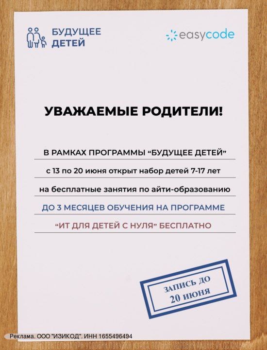 С 13 июня каждый ребенок может получить сертификат на бесплатное обучение IT-специальностям до 3 месяцев. Прием заявок продлится до 20 июня! Чтобы понять, может ли ваш ребенок получить сертификат, заполните небольшую анкету (займет пару минут). Вы сразу узнаете, попали ли вы под программу и какая IT-профессия подойдет вашему ребенку. Количество льготных мест ограниченно! Заполнить анкету и попасть на обучение IT-специальностям