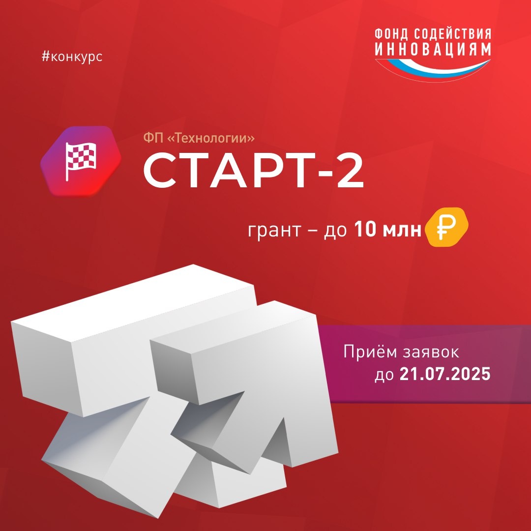 Инновационные компании Тверской области могут получить грантовую поддержку до 10 млн рублей, приняв участие в конкурсе «Старт-2» На конкурсе будут отобраны проекты по шести тематическим направлениям, в числе которых цифровые технологии; медицина и технологии здоровьесбережения; новые материалы и химические технологии; новые приборы и интеллектуальные производственные технологии; биотехнологии; ресурсосберегающая энергетика. В конкурсе могут принять участие малые предприятия, удовлетворяющие требованиям, указанным на сайте https://fasie.ru/press/fund/start-2-1-2025/. Заявки на конкурс «Старт-2» принимаются до 10:00 21 июля 2025 года. Помощь со сбором документации и оформлением заявки оказывают специалисты Центра «Мой бизнес» Тверской области, который работает в рамках президентского национального проекта «Эффективная и конкурентная экономика». Подробнее по ссылке #напроекты69