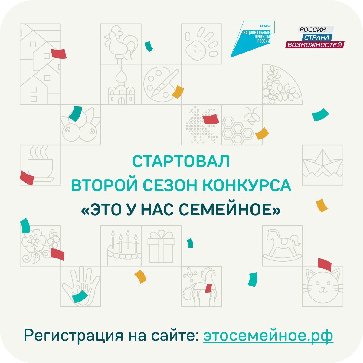 Стартовал новый сезон самого народного проекта президентской платформы «Россия – страна возможностей» – конкурса «Это у нас семейное» 👥 Проект сближает поколения, а также дает возможность стать частью большого сообщества семей. Участники вспомнят и соберут историю своей семьи, исследуют семейные корни, возродят семейные традиции, создадут интересные совместные проекты. 📃 Победителей ждут сертификаты на 5 000 000 рублей на улучшение жилищных условий, а финалистов – семейные путешествия. А еще в конкурсе много интересных заданий и классных подарков от партнеров для самых активных участников! Для участия нужно собрать команду из четырех и более человек, представителей трех поколений семьи – самому младшему участнику должно быть от 5 до 17 лет. После регистрации и заполнения анкеты будут доступны первые задания. 📍Больше информации и новых возможностей для семьи на сайте: family.rsv.ru/ #ЭтоУНасСемейное #РоссияСтранаВозможностей