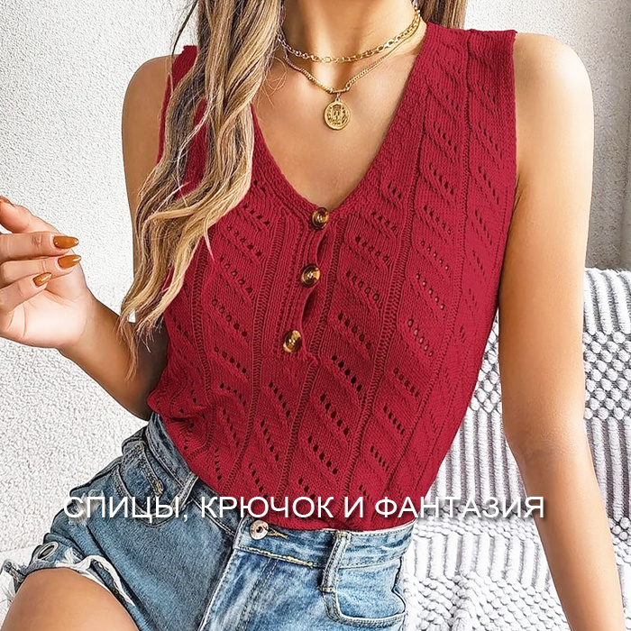 Представьте себе топ, который идеально сочетает в себе элегантность и комфорт — воздушный ажурный узор, дерзкий V-образный вырез и аккуратная цельновязанная планка на пуговицах. Этот вязаный безрукавный топ — идеальный вариант для жарких летних дней и стильных вечерних образов. Его проймы и горловина, оформленные резинкой 1×1 со снятыми петлями, выглядят утонченно, а лаконичная застежка добавляет нотку сдержанного шика. Почему именно этот топ? Готовы создать идеальный летний топ? Тогда за спицы — и вяжем стиль и легкость! Моя страничка ВКонтакте: https://vk.com/irina_knit_ru Мой канал на Рутубе: https://rutube.ru/channel/23731313/ Мой Телеграм: https://t.me/+l8qqiDZ_4cBlMDE6 Ажурный топ с V-образным вырезом и элегантной застежкой-планкой — это идеальный баланс легкости и стиля. Его универсальный дизайн позволяет создавать десятки образов: от повседневных до вечерних ансамблей с акцентной юбкой или брюками. Почему этот топ заслуживает места в вашем гардеробе? Носите его с