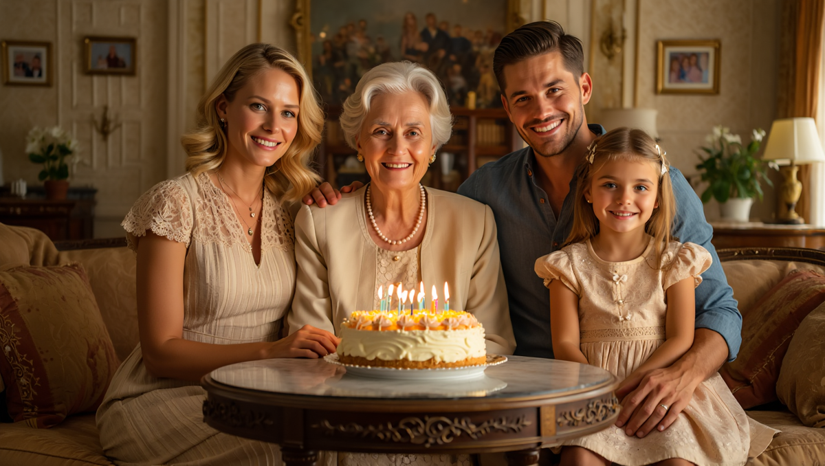 — Друзья мои! В свой юбилей я хочу поделиться радостной новостью. Я недавно пересмотрела своё завещание и хочу, чтобы вы все знали — я позаботилась о будущем моей любимой внучки Софии. Основная часть моего имущества перейдёт ей.
