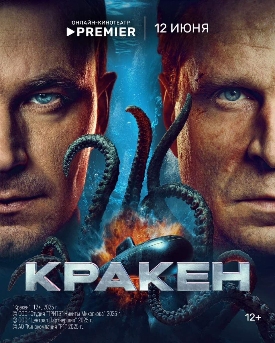 Выпускаем «Кракена» на PREMIER 12 июня 🦑 Фантастический боевик о российских подводниках, которые сталкиваются с морским чудовищем во время миссии. В главных ролях — Александр Петров и Виктор Добронравов ⚡ Смотрите всё лето за 99 ₽/мес