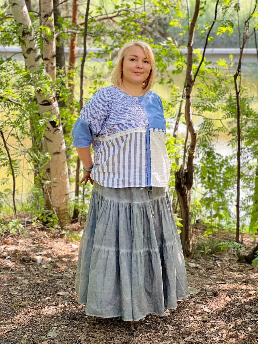 Что-то я увлеклась блузонами, шью и все мне мало. Видимо, потому что запас хлопковых тканей вдохновляет, и как-то подсобралось вещей льняных, да хлопковых из которых дочери выросли (сарафаны, к примеру), вот и тянет заняться сочинительством... Первый блузон получился прям морской, приукрасила, опять же, "лохматыми" полосами и декоративными строчками. Такая вышла история, с какой стороны ни глянь - красота. "Я так думаю!"-, как говаривал в известном фильме товарищ Фрунзик Мкртчан.. Второе сочинение также с использованием нового отреза хлопкового в нежную полоску, плюс отжившие свое льняные брюки и кружевное платье неизвестного происхождения. Думаю, ещё ворот хлопковой ниткой обвязать для пущей гармонии... Цветущие яблони в Сургуте это какое-то нереальное зрелище, а вот блузон мой в эту картинку вписался идеально.