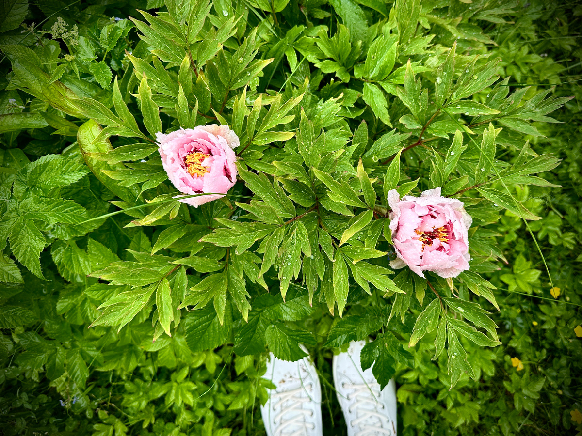Дождалась!!! Второй раз за свою семилетнюю жизнь цветет древовидный пион. Этот красавчик ведет себя абсолютно непредсказуемо, но ему все простительно! Вы только посмотрите на эти два превосходных цветка. Я на седьмом небе от счастья! Кустик высотой все так же 30 см. В ширину около полуметра. Размер цветков около 15 см в полуроспуске. Этот красавчик был куплен в обычном садовом гипермаркете в коробке, ранней весной, сначала мучал я в холодильнике, пророс, был посажен в горшок, дотянул до июня, был высажен в грунт в Ленобласти, и даже выжил. На зиму уже несколько лет не укрывается, цветет второй раз именно после малоснежной зимы, но, правда, и не сильно морозной. А второй древовидный пион моего сада пока не собирается цвести, нарастил листву высотой 40-50 см и сидит думает о чем-то, подождем, вдруг одумается. На фото ниже он слева в середине кадра. А ваши цветут? Кидайте фото в комментариях) Валентина @sadvkobrino