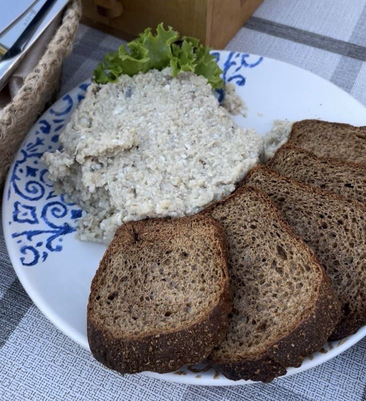 (на 4–6 порций, 20 мин активной работы) В идеале нужна дунайская селёдка из моего детства, но подойдёт жирная атлантическая сельдь двойного посола или филе малосольной кильки/балтийской сельди. Важно, чтобы рыба была упруго-жирная, без резкой уксусной кислинки. Ингредиенты: • Сельдь — 1 крупная тушка (≈ 350 г) • Кислое зелёное яблоко (симиренко/ренет) — 1 шт. • Белый салатный лук — ½ маленькой луковицы • Подсушенная белая булка — ¼ (≈ 70 г) • Молоко — 80–100 мл • Сливочное масло 82 % — 80 г (комнатной t°) • Сок ¼ лимона • Щепотка свежемолотого чёрного перца Процесс: 1. Снимите кожу, разорвите тушку вдоль хребта «как лист бумаги» — все кости останутся на каркасе. Проверьте филе на мелкие косточки и нарубите ножом мелкими кубиками, сохраняя текстуру. 2. У хлеба срежьте корку, мякиш замочите в молоке на 3 мин, затем хорошо отожмите. 3. Яблоко и лук очистите, натрите на мелкой тёрке (или порубите очень мелким кубиком). 4. Соедините селёдку, яблоко, лук, хлеб. Добавьте мягкое масло, лимонны