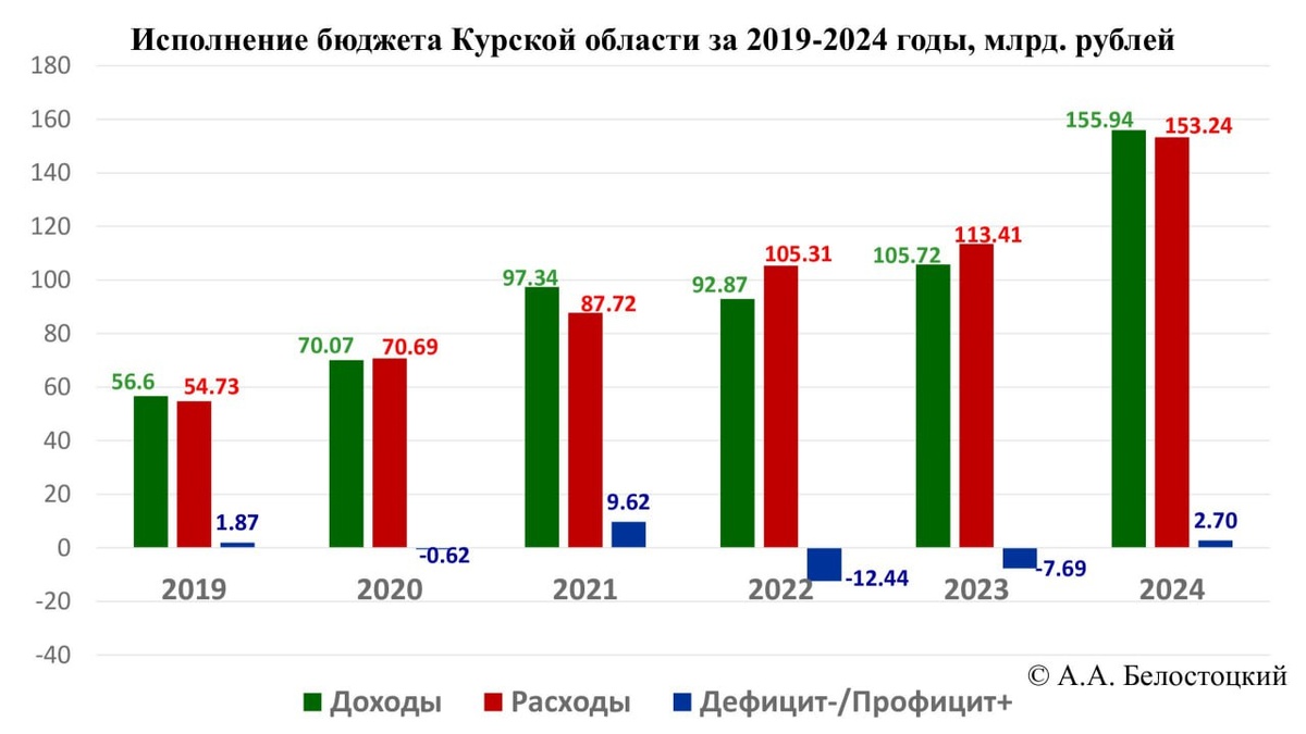 Алексей Белостоцкий, доцент Курского филиала Финансового университета при Правительстве РФ об исполнении бюджета Курской области за 2024 год — по итогам публичных слушаний: ⚫️Учитывая, что бюджет Курской области основывается на прогнозе социально-экономического развития региона, который формировался в условиях нестабильной мировой экономики, ужесточения санкций, связанных с СВО рисков, — все это повлияло на недостижение 34 показателей из 76 ⚫️Тем не менее доходы регионального бюджета достигли 155,9 млрд рублей, что на 48% больше уровня 2023 года ⚫️По итогам 2024 года бюджет исполнен с профицитом в размере 2,7 млрд рублей. Для сравнения: в 2023 году бюджет был исполнен с дефицитом 7,7 млрд рублей ⚫️Рост был обусловлен увеличением как налоговых (на 102,2% за 2024 год) так и неналоговых поступлений. Налоговые и неналоговые доходы составили 69,3 млрд. рублей ⚫️Значительно вырос объем безвозмездных поступлений — до 86,7 млрд. рублей ⚫️В 2024 году исполнение по расходам бюджета состави
