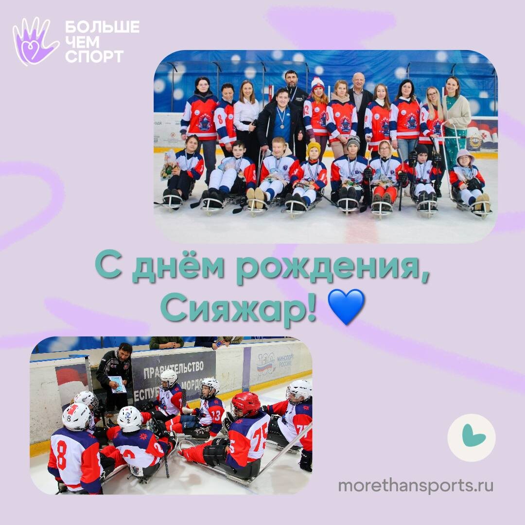 🎉 9 июня — день рождения следж-хоккейной команды «Сияжар» (г. Саранск)! ⠀ За 3 года под чутким руководством профессиональных тренеров Анатолия Юрьевича Паршина и Айваза Бикмурзина команда прошла огромный путь и достигла впечатляющих результатов. ⠀ 🏒 «Сияжар» — это сила духа, командная работа и настоящая любовь к хоккею! ⠀ Поздравляем с днём рождения и желаем новых побед, ярких турниров и нескончаемой энергии на льду! ⠀ 💙 Вперёд, «Сияжар»! 🔥 Вы — огонь, вы — жар, вы — команда «Сияжар»!