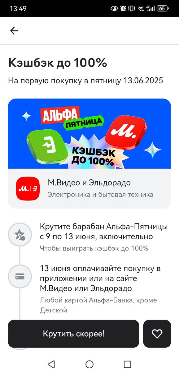 В Альфе замечен еще один барабан суперкешбэка. Искать через "кешбэк и бонусы" - предложения партнеров, там будет баннер.