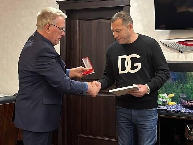 Мэра Красноярска подозревают во взятке от хозяина «Секрета Победы» — ТВК Уголовное дело мэру Красноярска Владислава Логинова («ЕР») может быть связано с получением более 100 млн рублей от бизнесмена Декарда Ханагяна (на фото справа), сообщает ТВК со ссылкой на источник. Ранее бывшего главу городского управления дорог Евгения Жвакина обвинили в получении 73 млн от Ханагяна в 2018-2019 годах через посредника, бывшего вице-мэра Алексея Давыдова. Источники издания утверждают, что теперь показания против мэра Логинова дали и Ханагян, и Давыдов. Самого Ханагяна задержали ещё в июне 2024 года. В декабре он заключил досудебное соглашение. По данным сервиса «Контур.Фокус», Декард Ханагян владеет красноярскими компаниями «ПромСтрой» и «Секрет Победы». Первая фирма регулярно получала господряды на ремонт дорог и тротуаров, их общая сумма с 2011 года оценивается почти в 10 млрд рублей. Среди последних крупных подрядов Ханагяна – контракт на ремонт дорог в Красноярске за 259 млн рублей, подпис