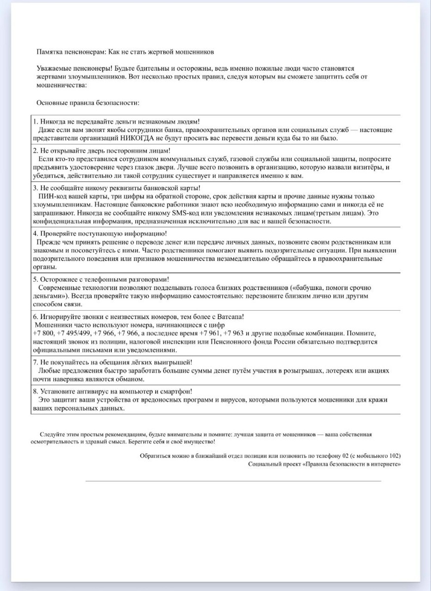 Памятка пенсионерам: Как не стать жертвой мошенников