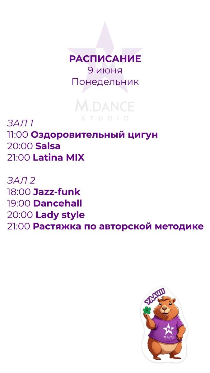 Желаем вам отличной новой недели! Ждём танцевать!💜 ✅️ Записаться в WhatsApp ✅️ Записаться в Telegram ✅️ Группа в ВК ✅️ Канал в Telegram ✅️ Наш сайт 💌 Наше полное расписание 📍 Долгопрудный, ул. Дирижабельная 15 "б" Мы на Яндекс Картах