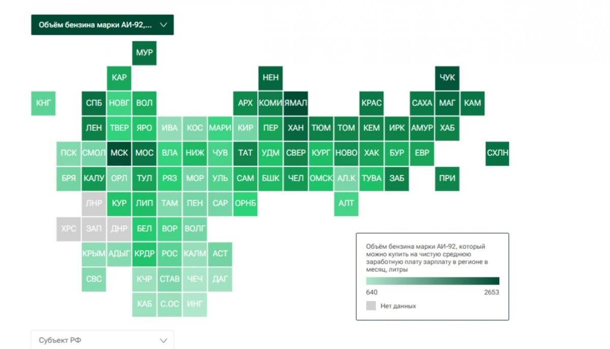 Орловская область оказалась на 70 месте в рейтинге российских регионов по доступности бензина. Информацию опубликовали аналитики «РИА Рейтинг». Согласно опубликованным данным, объем бензина марки АИ-91, который можно приобрести за чистую зарплату в Орловской области в месяц равен 890 литрам. В апреле такой бензин в среднем обходился жителям региона в 55,96 рублей, а изменение цены с декабря предыдущего года составило 3,1%. Первое место рейтинга досталось Ямало-Ненецкому АО, жители которого могут позволить себе более 2,6 тыс. литров бензина в месяц. При этом, с декабря 2024 года топливо в регионе подешевело на 4,7%.