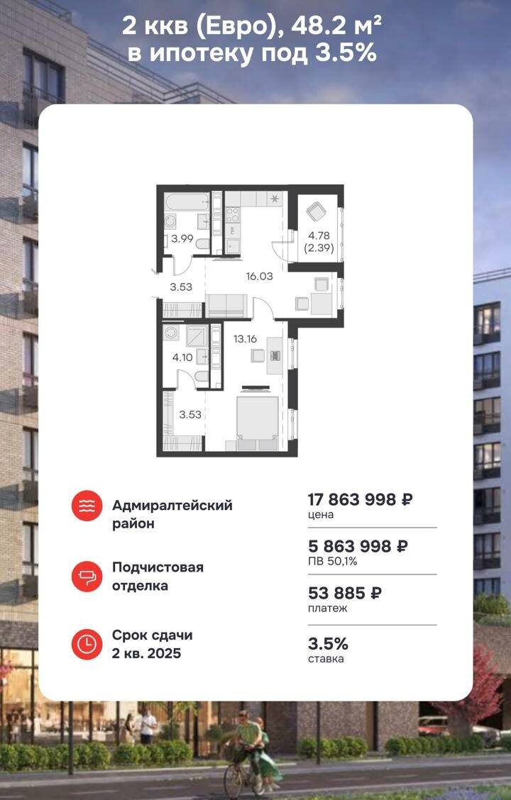 ⚡️Ипотека под 3,5% в сданном доме, Адмиралтейский район, 7 минут до метро Балтийская⚡️