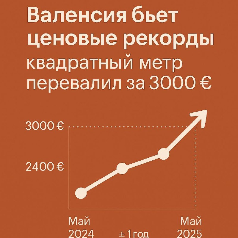 В мае 2025 года Валенсия официально вступила в "клуб трёхтысячников" — средняя стоимость одного квадратного метра жилья в городе достигла 3017 €. Это первый случай, когда цены превысили психологическую отметку в 3000 €, и, похоже, это далеко не предел.